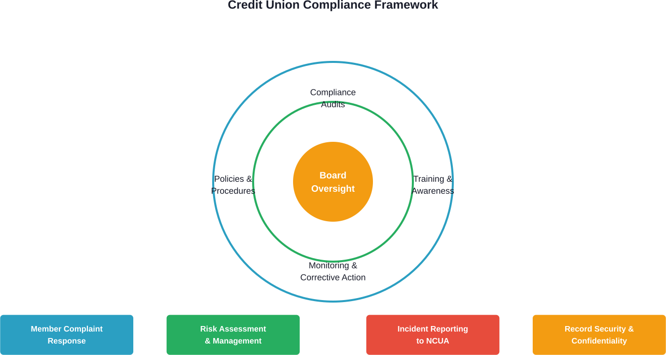The NCUA requires federally insured credit unions to develop comprehensive compliance management systems with specific components: board and senior management oversight, policies and procedures, training, monitoring and corrective action, member complaint response, and compliance audits.