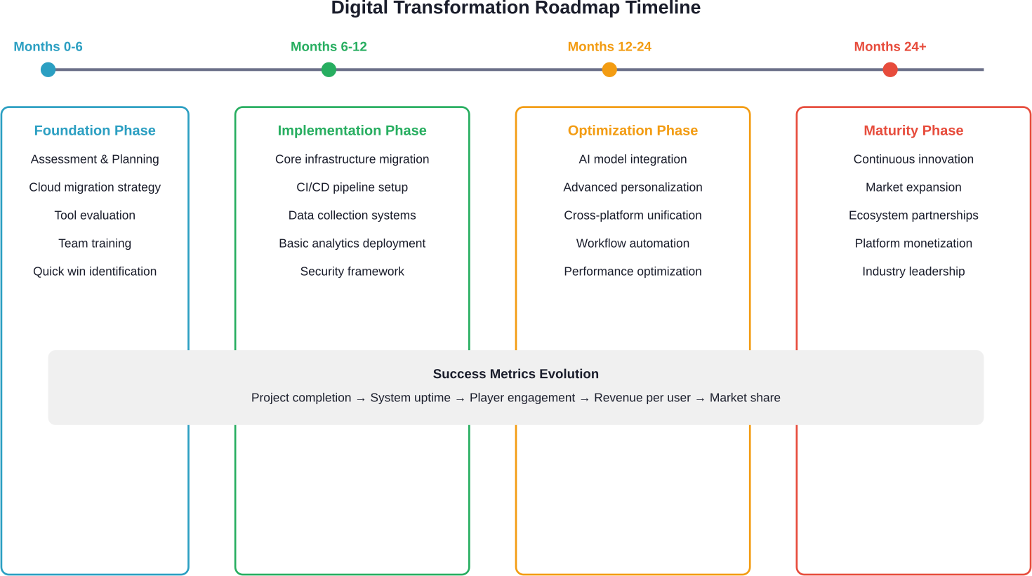 Ready to modernize your gaming technology stack? Begin with infrastructure foundations, prioritize player-facing improvements, and build organizational capabilities systematically. The competitive advantages from successful transformation justify the complexity of implementation.
