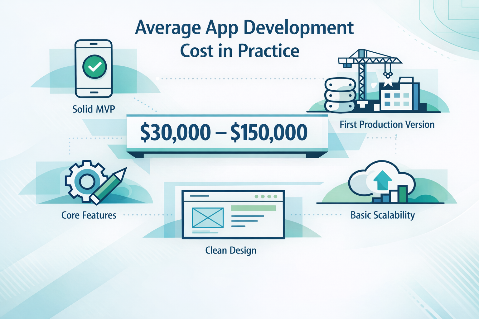 If you’re looking for a realistic midpoint rather than extreme examples, most professionally built apps today land somewhere between $30,000 and $150,000. This range typically covers a solid MVP or a first production version with core features, clean design, backend integration, and basic scalability in place.
