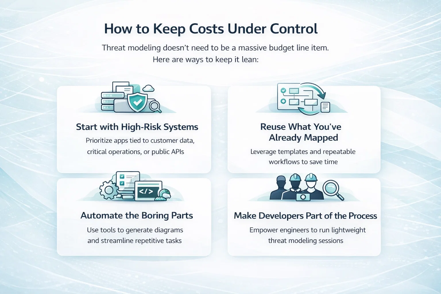 Threat modeling doesn’t need to be a massive budget line item. Here are ways to keep it lean: