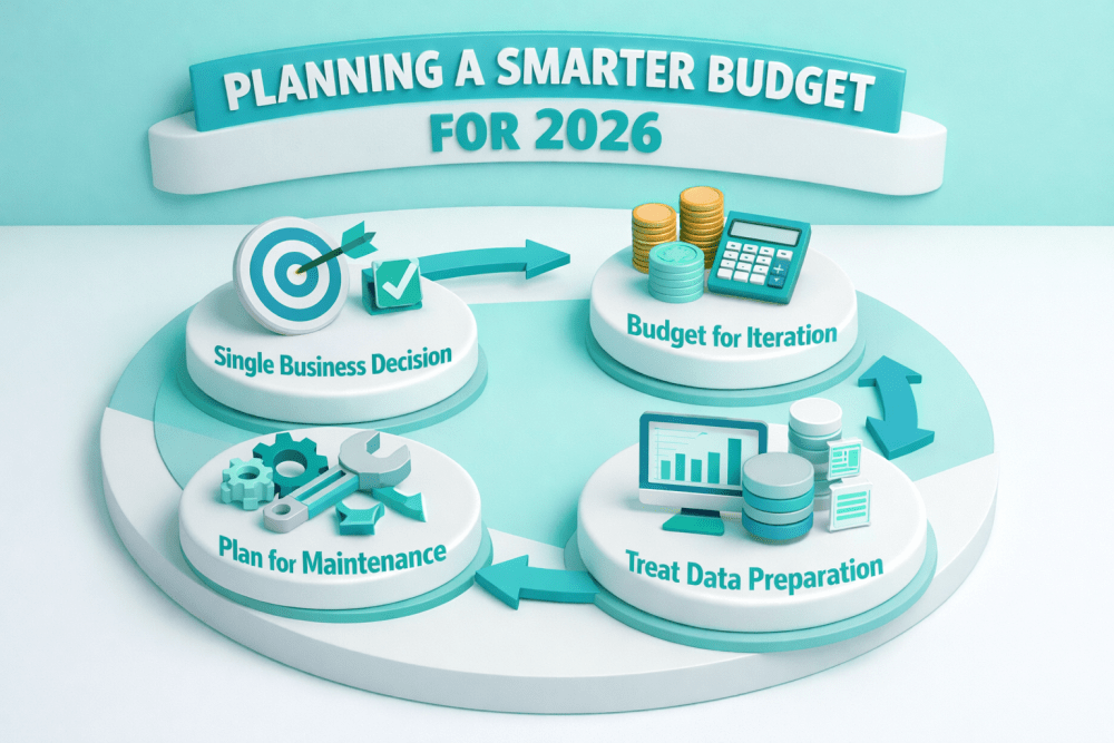 - Start with a single business decision, not a platform. Anchor the budget to one concrete outcome, such as improving forecast accuracy or prioritizing leads. Platforms and tooling should come later, once value is proven.
