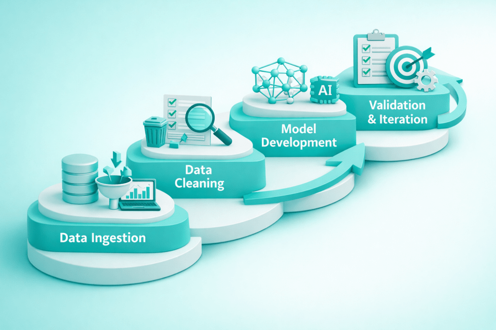 - Treat data preparation as a first-class cost. Cleaning, aligning, and maintaining data often takes more time than modeling itself. Underfunding this step is one of the fastest ways to derail timelines and inflate costs later.