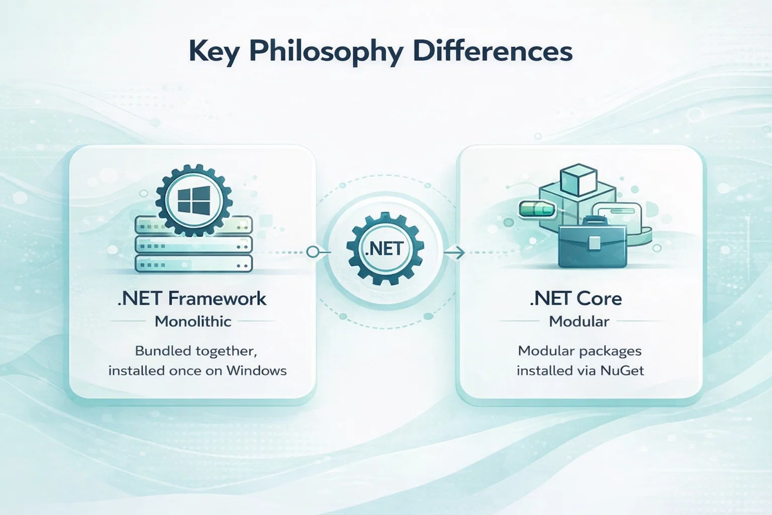 Before diving into code or migration plans, it helps to step back and see the big picture. Whether you’re maintaining an existing system or planning a new build, this side-by-side view highlights where .NET Core and .NET Framework really differ, and why it matters.