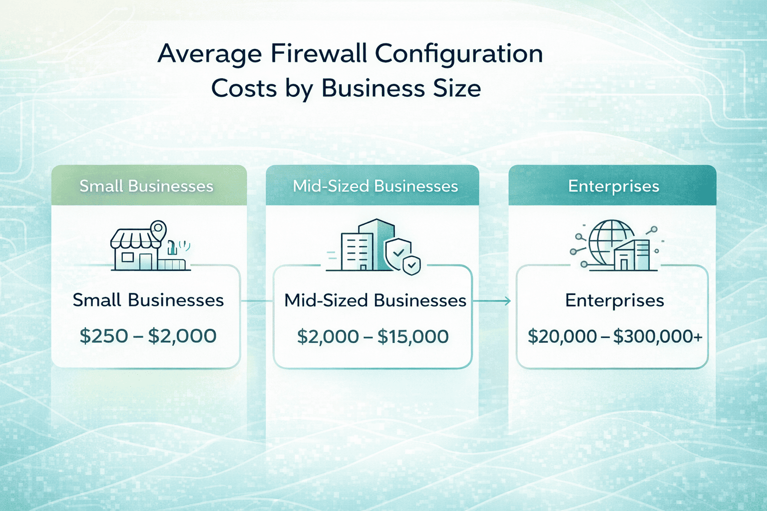 To give you a sense of how firewall-related expenses scale by business size, here’s a breakdown based on common industry pricing.